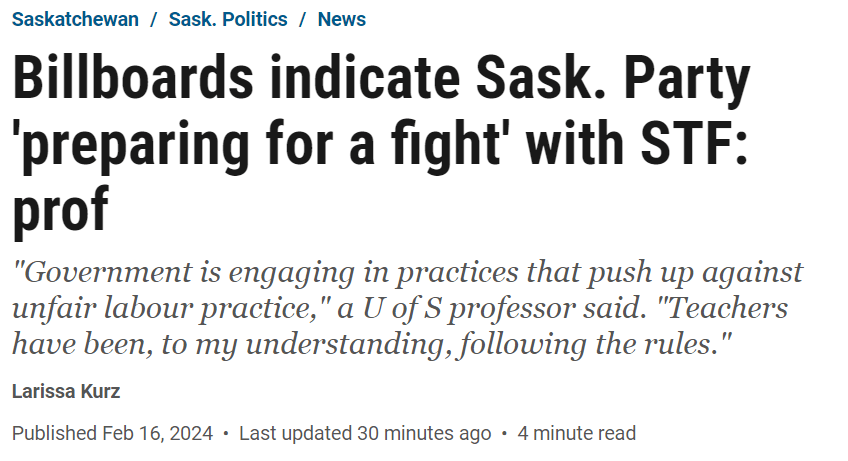 Today’s Regina Leader Post features an interesting story on the timing of billboards on teacher negotiations, paid for with tax dollars by Saskatchewan’s Ministry of Education.