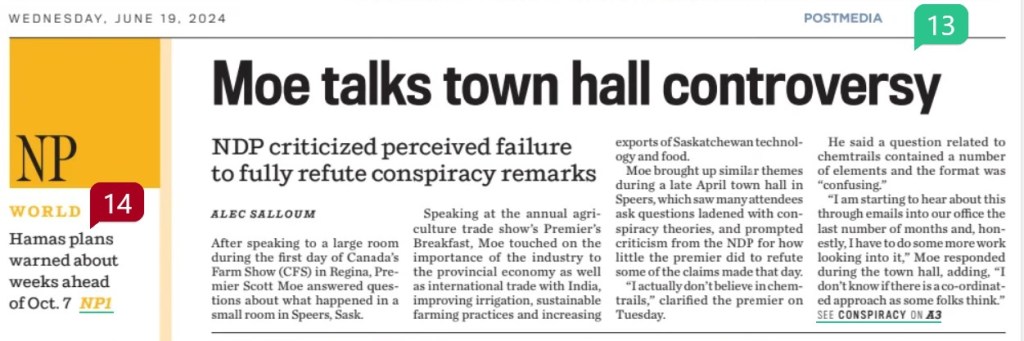 Every day you are talking about whether or not you believe in chemtrails or rebuffing calls for an investigation into alleged harassment of Saskatchewan’s Speaker of the Legislative Assembly is a day you are not articulating your core message. Nor are you comparing and contrasting your record with the record of your opponents. Yes, there is still plenty of time before the next Saskatchewan provincial general election in late October. However, as Messina states in his interview time is the only thing you can’t get more of in politics and time is always running-out.