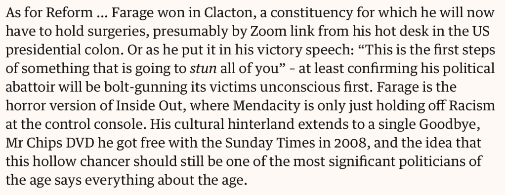Apparently good taste and sound judgments aren’t always coincident with political ambition. In any event, the fight for the “soul” of the Conservative Party (or what ever is left) will be entertaining.